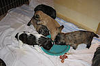 Es ist für die Welpen sehr wichtig, dass sie oft Kontakt haben mit fremden Menschen, auch mit Kindern und anderen Hunden.